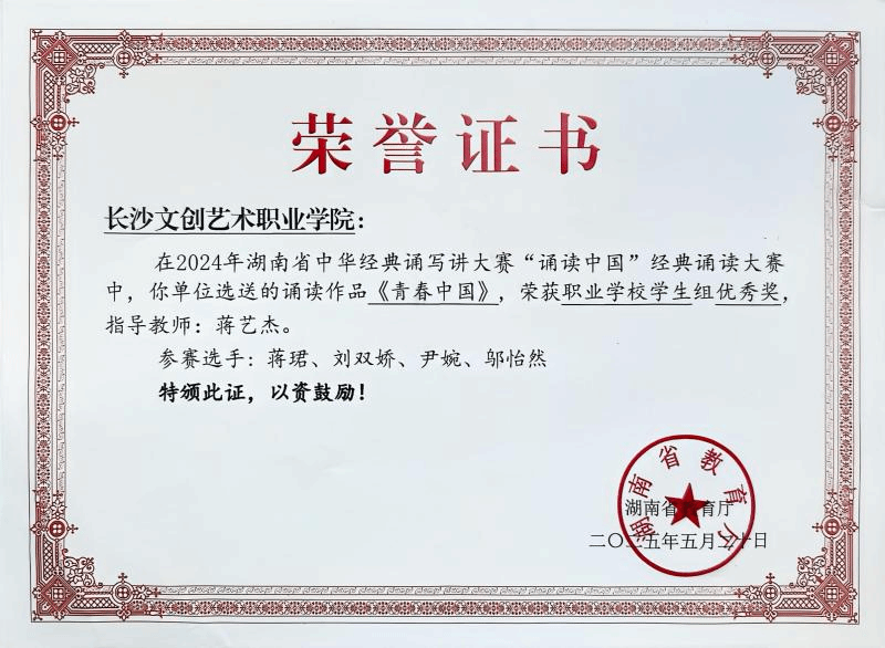 我校学生在湖南省中国经典诵写讲比赛中荣获佳绩